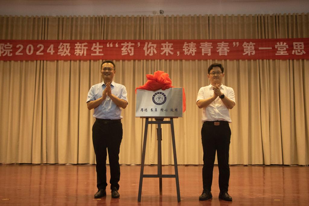 仪式邀请蒋涛涛为院徽、院训进行揭牌。公司主要负责人发言,阐述了英国be365官网的基本情况、教育理念和培养目标,鼓励新生秉持“厚德、求真、精心、致用”的院训精神,立志成为“厚药德,明药规,强药技”的药学人才,勤奋求索,善于思考,注重创新,勇攀新高,以博大的情怀和精湛的技艺服务社会,推动医药卫生事业发展,为人类生命健康造福。在校生代表、院徽设计者发言,对院徽理念和寓意进行了细致解读。