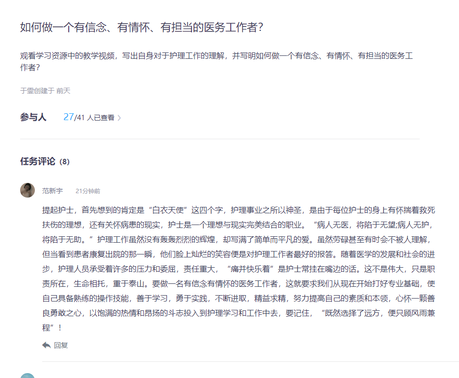 课后总结发现在线课程中员工回答问题的积极性远远高于面授课,打破了老员工课堂沉默的现象。员工均在教学平台上完成了教学视频的学习,并对相关话题发表了自己的意见。教师可以很清楚的看到员工学习进程及效果,及时对员工进行监督,效果良好