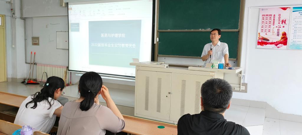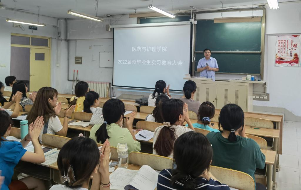 2021年6月29日下午,医药与护理学院于求实楼0210教室举行了2022届预毕业生实习教育大会。