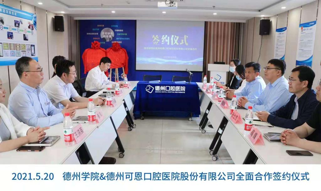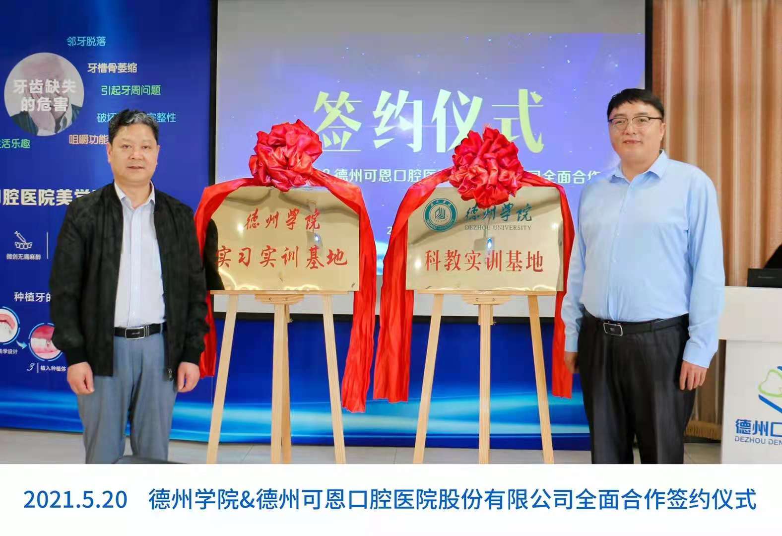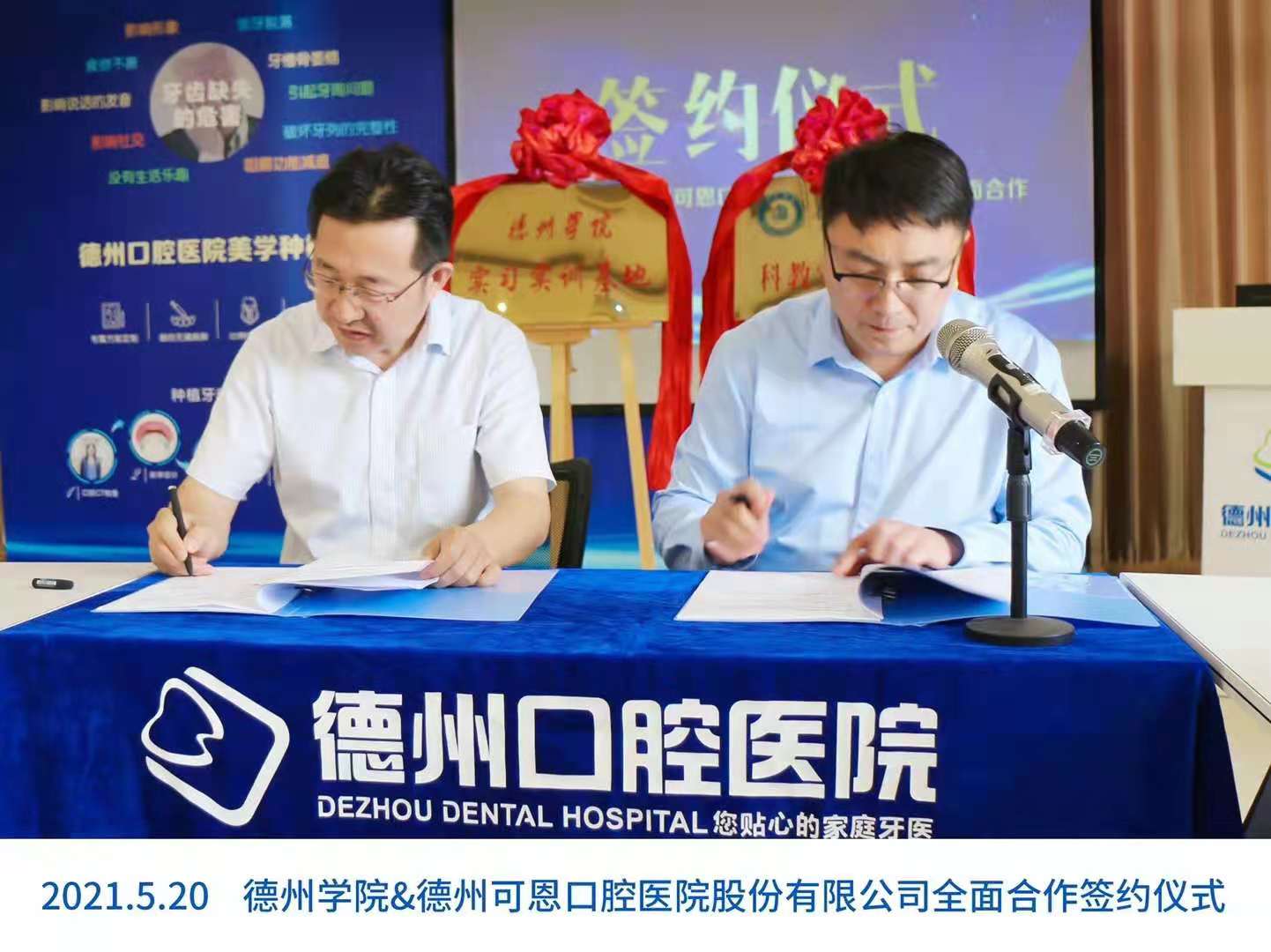 5月20日下午,英国be365官网与德州可恩口腔医院股份有限公司全面合作暨实习实训基地、科教实训基地签约仪式在德州口腔医院举行。