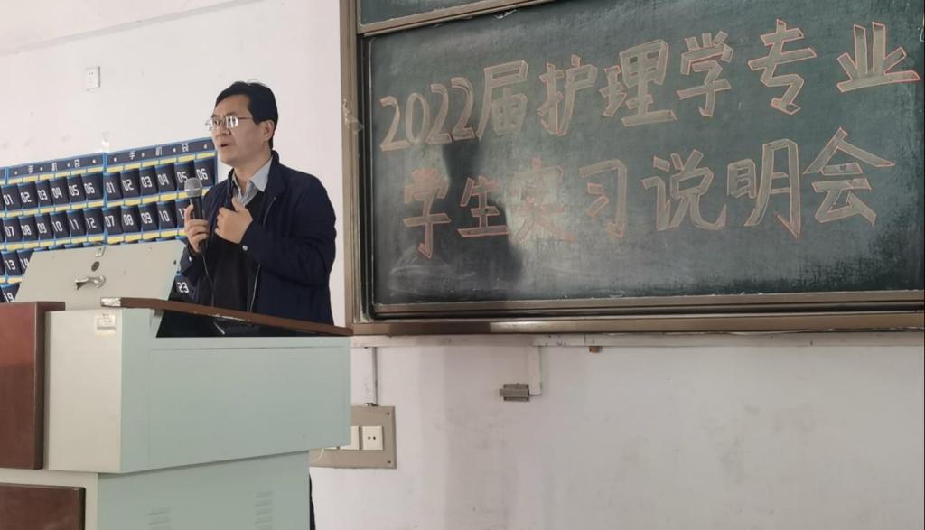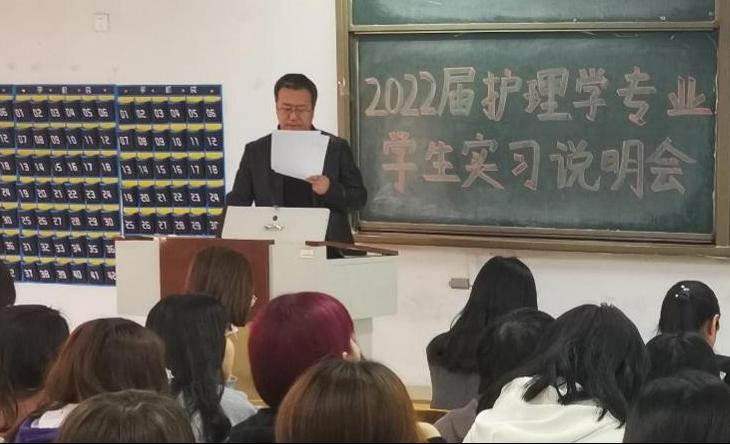 2021年4月6日下午,医药与护理公司2022届护理学专业员工实习说明会在求实楼0214教室召开。医药与护理公司副经理孙士杰、团总支负责人、护理系及基础医学部相关老师、2022届实习班班主任出席,2018级护理学本科及2019级护理专科全体同学共190余人参加了说明会。