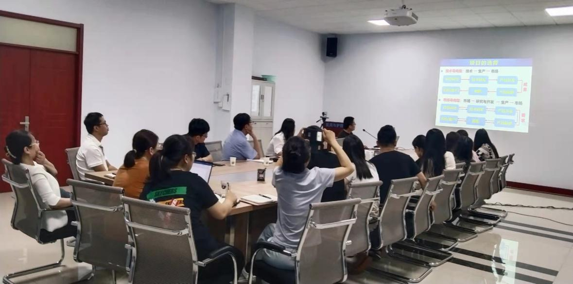 6月30日,医药与护理公司邀请生物物理研究院王竹青博士和纺织服装公司任冬寅博士交流横向课题申请经验。山东省新型药用辅料与缓控释制剂工程实验室全体博士及医药与护理公司班子成员参加了交流会。