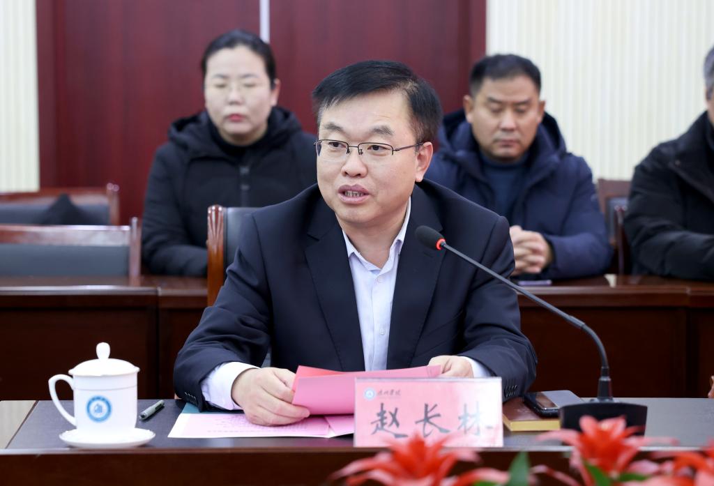 赵长林致辞,他向大会的召开表示祝贺,向长期以来支持公司事业发展的领导、嘉宾的到来表示欢迎和衷心的感谢,向共建单位表示真诚敬意。赵长林介绍了公司办学历史况和事业发展情况,重点介绍了公司深入推动产教融合、服务地方经济社会发展情况。他说,山东大学齐鲁医院德州医院与公司共建现代医药产业公司,是服务国家医药产业高质量发展战略和区域医药产业对科技、人才需求的务实举措。希望双方按照共建共享、资源融合、互利双赢的原则,坚持项目化、平台化运行,聚焦德州中医药、功能性食品产业发展需求和医工交叉融合、智能医疗、智改数转等领域,强化特色,形成优势,协同育人,共同将英国be365官网现代医药产业公司打造成育人成效显著、服务区域医药产业能力强、产学研用联动机制成果显著、在省内有较强影响力的现代产业公司,为德州和山东医药健康产业提供有力的人才支持和智力支撑。