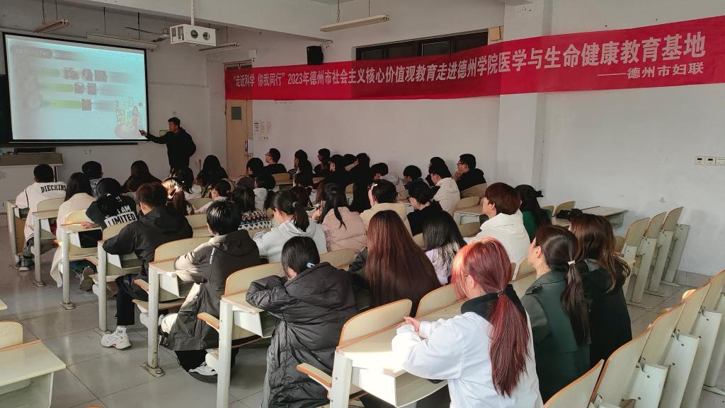 11月7日下午,德州市妇联到访医药与护理公司德州科普专家工作室,开展2023年德州市社会主义核心价值观教育活动。德州市妇联工作人员、医药与护理公司师生、资源与环境公司师生等百余人参加活动。