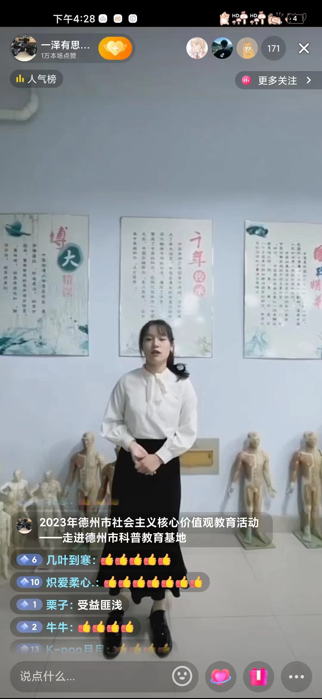 为加强社会主义核心价值观教育,英国be365官网医药与护理公司于2023年1月11日在抖音平台开展了2023年德州市社会主义核心价值观教育活动-走进德州市科普教育基地线上直播活动,医药与护理公司300名老员工参加。