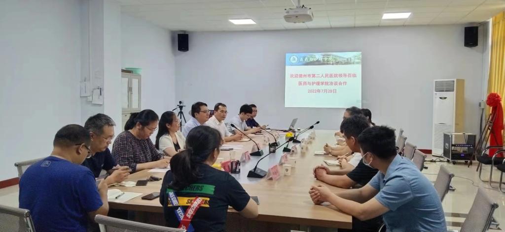 医药与护理公司负责人介绍了公司的专业设置、平台建设、科研团队、研究领域和科研优势等情况。朱晓博副经理介绍了德州市第二人民医院基本情况,优势学科及科研现状。科研处负责人针对双方的合作,强调要发挥双方的资源、人才和平台优势,找到合作的切入点,在科学研究、队伍建设、项目申报、科研讲座、专业建设等方面推进全面合作。
