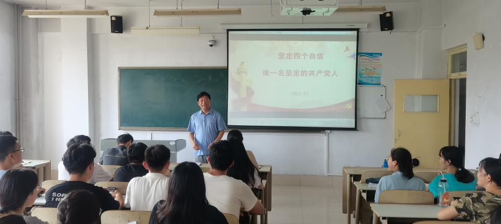 2021年7月6日,医药与护理公司党总支书记王秀来以《坚定“四个自信”做一名坚定的共产党人》为主题,为全体员工党员上了一场生动的党课。