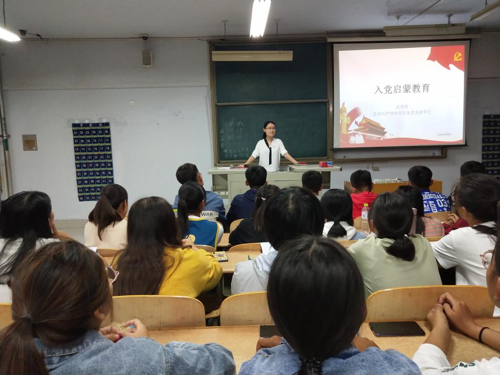 为加强19级新生对入党相关知识的了解,引导新生积极向党组织靠拢。2019年9月18日晚,医药与护理公司于求实楼2013和2014教室分批开展了“2019级新生入党启蒙教育”活动,员工党支部书记武珊珊老师进行讲解,2019级全部新生参加了本次活动。