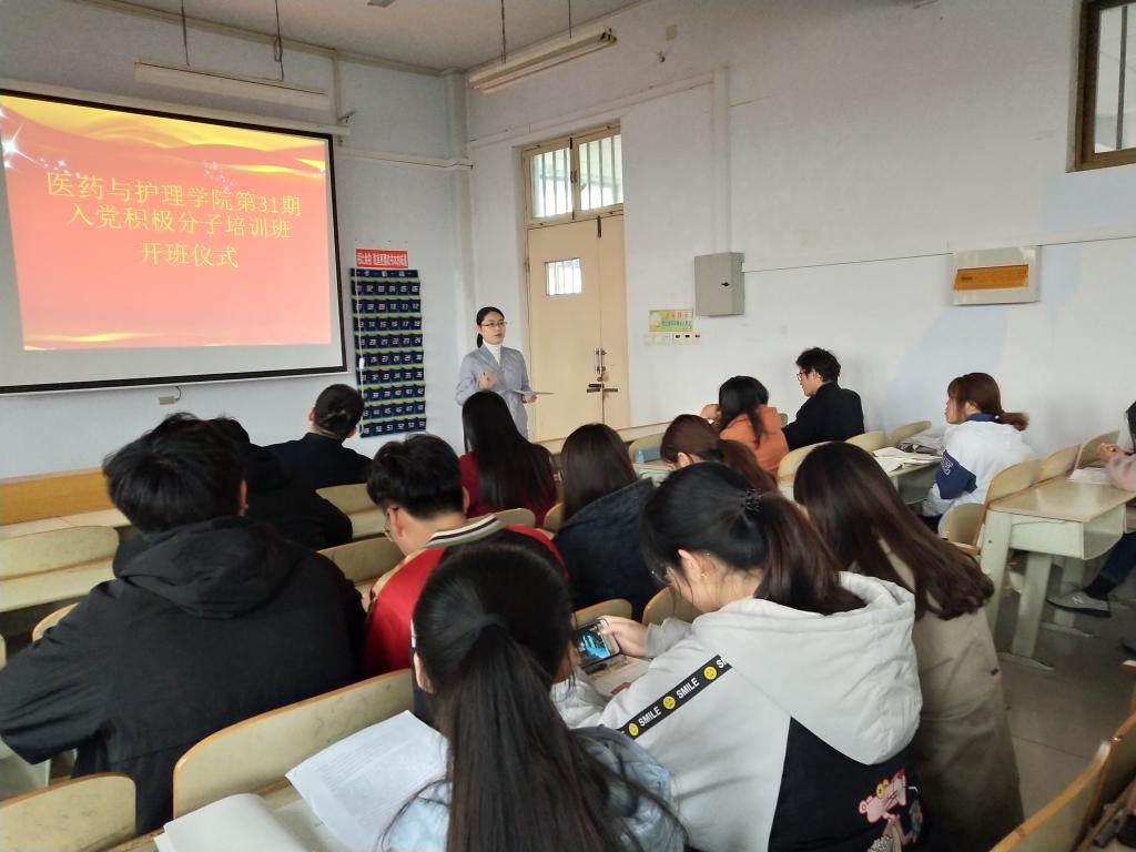 为深入学习贯彻习近平新时代中国特色社会主义思想和党的十九大精神,切实做好入党积极分子的教育培训工作,不断提高发展党员质量。医药与护理公司于2019年4月9日下午在求索楼4001教室举办第31期入党积极分子培训班开班仪式。员工党支部全体师生党员、入党积极分子参加了开班仪式,党总支书记王秀来出席仪式并讲党课。