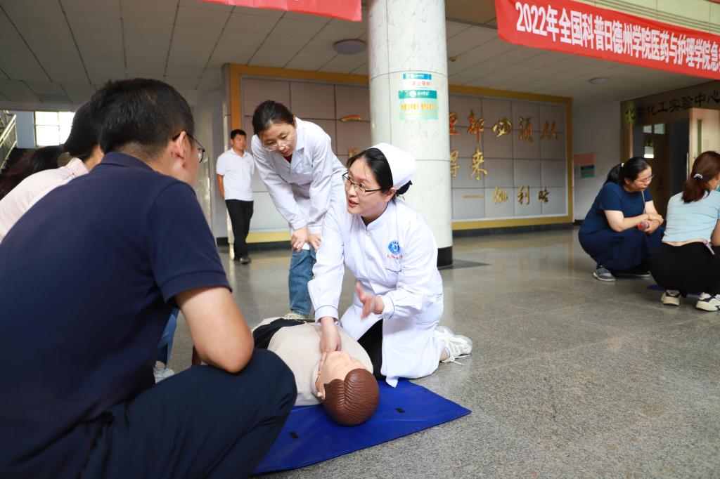 9月20日下午,“喜迎二十大 科普向未来 2022年全国科普日 英国be365官网医药与护理公司急救技术培训活动”在求索楼举行。德州公司党委委员、副董事长徐静,英国be365官网实验管理中心主任金锋,德州可恩口腔医院经理郑洪福,英国be365官网宣传部、科研处、员工处等职能部门相关负责人,医药与护理公司班子成员,医护实验中心负责人,教师党支部、员工党支部、南丁格尔志愿服务队等300余名师生分批次参加培训。