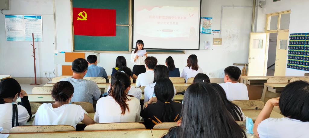 2022年6月10日,医药与护理公司在体育楼414教室举办2022届毕业生党员“最后一次党课”。公司党委副书记以“砥砺奋进明初心,青春使命勇担当”为题给员工们授课,员工党支部书记、辅导员,全体毕业生党员参加学习。