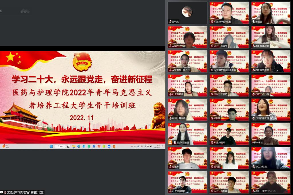 为认真学习贯彻党的二十大精神,培育“对党忠诚、信仰坚定、素质突出、作风过硬”的青年政治骨干,切实加强公司团学干部队伍建设,培养一批信仰坚定、能力突出、素质优良、作风过硬的青年政治骨干。11月15日,医药与护理公司举办青年马克思主义者培养工程老员工骨干班开班仪式,团委书记主持,党委书记、党委副书记出席,辅导员老师、全体参训学员参加。