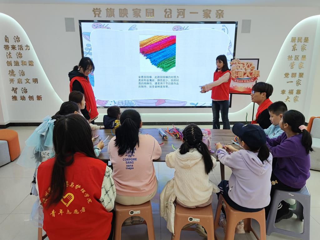为促进社区儿童健康成长、全面发展,提高美学素养及审美能力,弘扬中华传统编织文化,传承雷锋精神,医药与护理公司于3月16日上午在岔河社区开展以“七彩童心 共护未来”儿童关爱为主题的活动。
