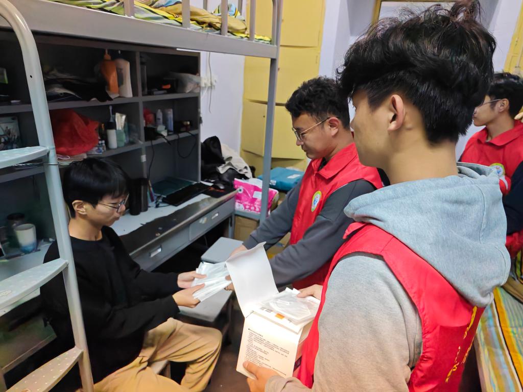 活动伊始,志愿者提前到达员工宿舍楼,准备物资分发任务。随后成员们有序分散到各个宿舍为同学们发放口罩,并讲解正确佩戴口罩的方法。在发放口罩的过程中,志愿者高度负责,积极关心同学们的身体情况,提醒冬季流感预防的健康常识,平时要养成良好的生活习惯,做好日常防护,佩戴好口罩,宿舍内做到常消毒,勤通风。
