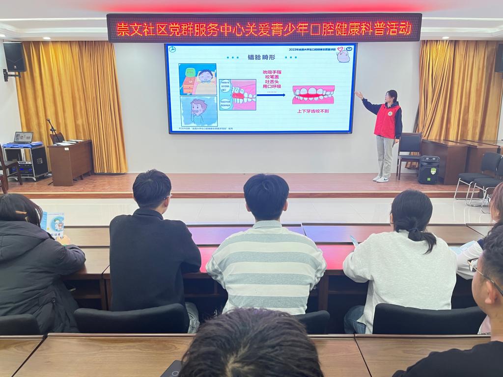 为加强儿童口腔保健知识教育普,提高家长和儿童口腔保健意识,促进儿童正确掌握口腔保健方法,医药与护理公司公司南丁格尔志愿服务队联合“健康口腔,笑纳阳光”口腔志愿宣讲团于11月19日上午在崇文社区开展“小小牙齿不简单”口腔健康科普活动。