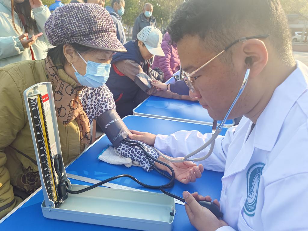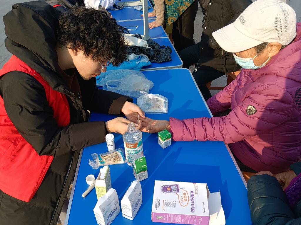 PPT展示为社区居民讲述了口腔保健用品和牙齿敏感等常见问题,并在社区广场设立健康义诊服务点,他们为居民测量血压、血糖,讲解冬季保健常识。社区居民为志愿者们的到来表示欢迎和赞赏,让“青马”公司和志愿者们在社会实践中了解基层、服务基层,为基层社区的发展贡献青春力量。