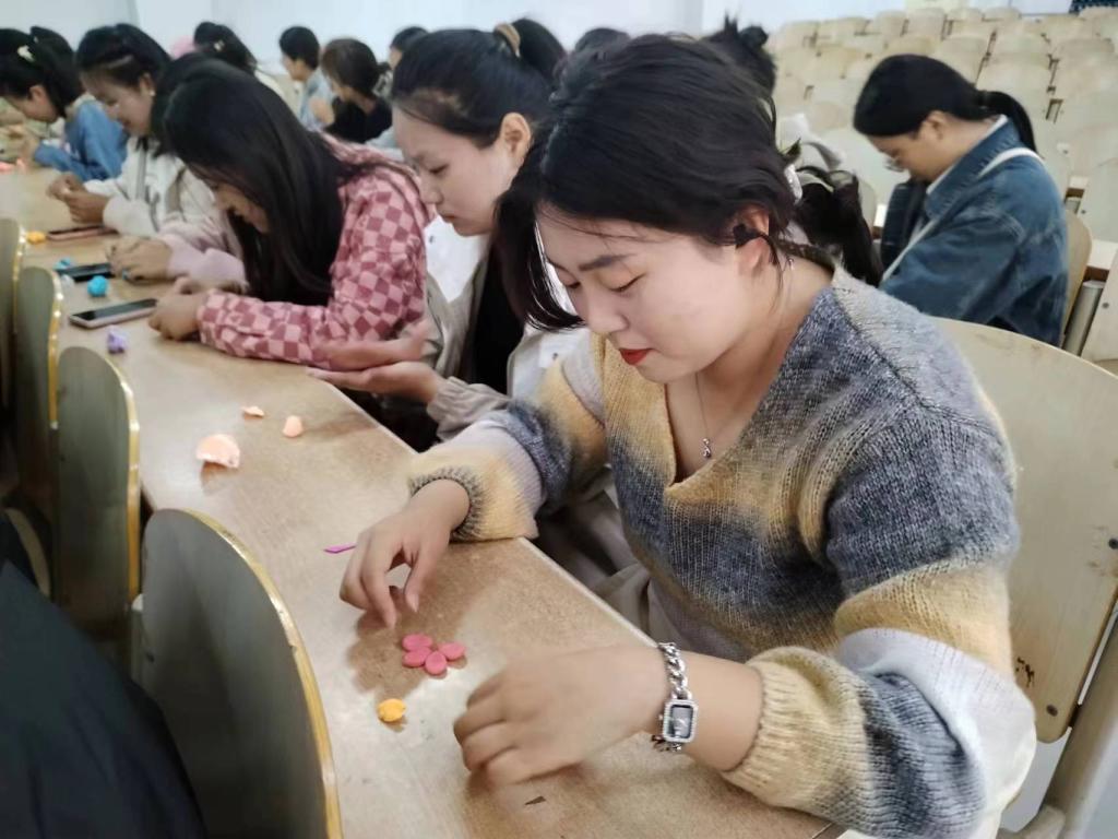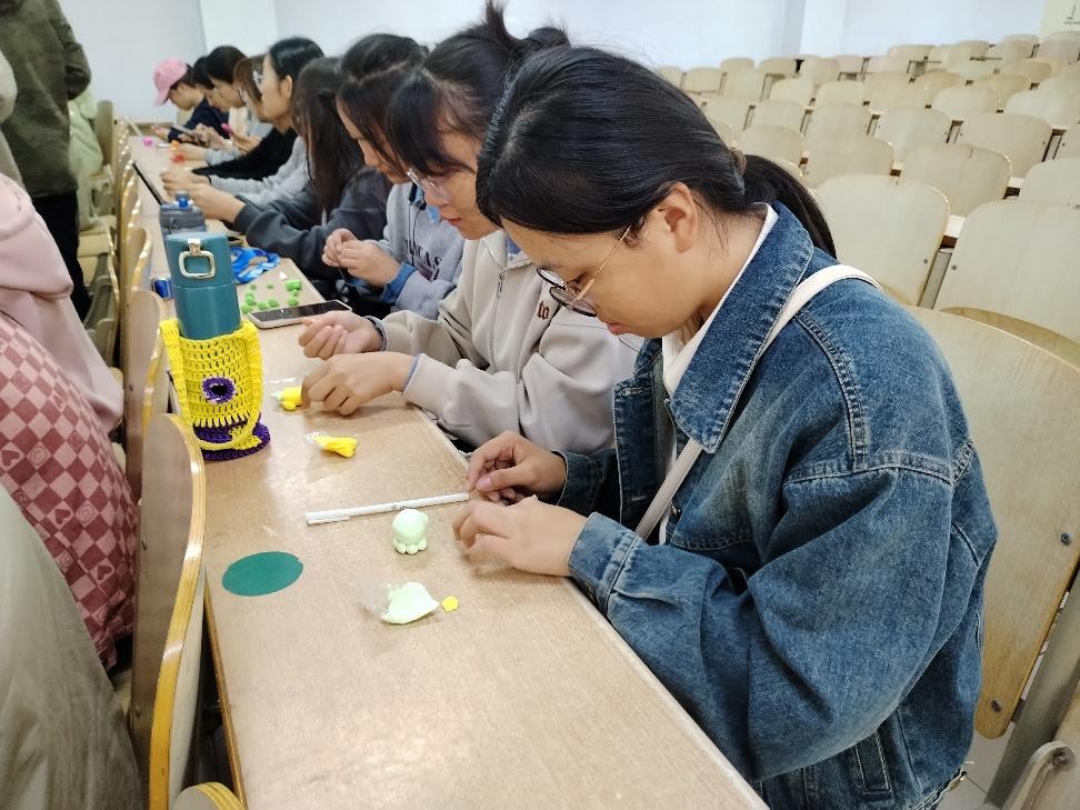 活动中,慧心巧艺坊的志愿者PPT的形式向同学们介绍了本次活动的流程及注意事项,并向大家展示了一些太空泥的教程和作品。同学们在五颜六色的太空泥中揉切,认真地将自己的想法转变为现实,在实践中收获快乐,创造出令自己满意的作品有的同学制作出了色彩斑斓的花朵,有的则塑造出形象逼真的小动物每一件作品都凝聚了大家的心血和努力