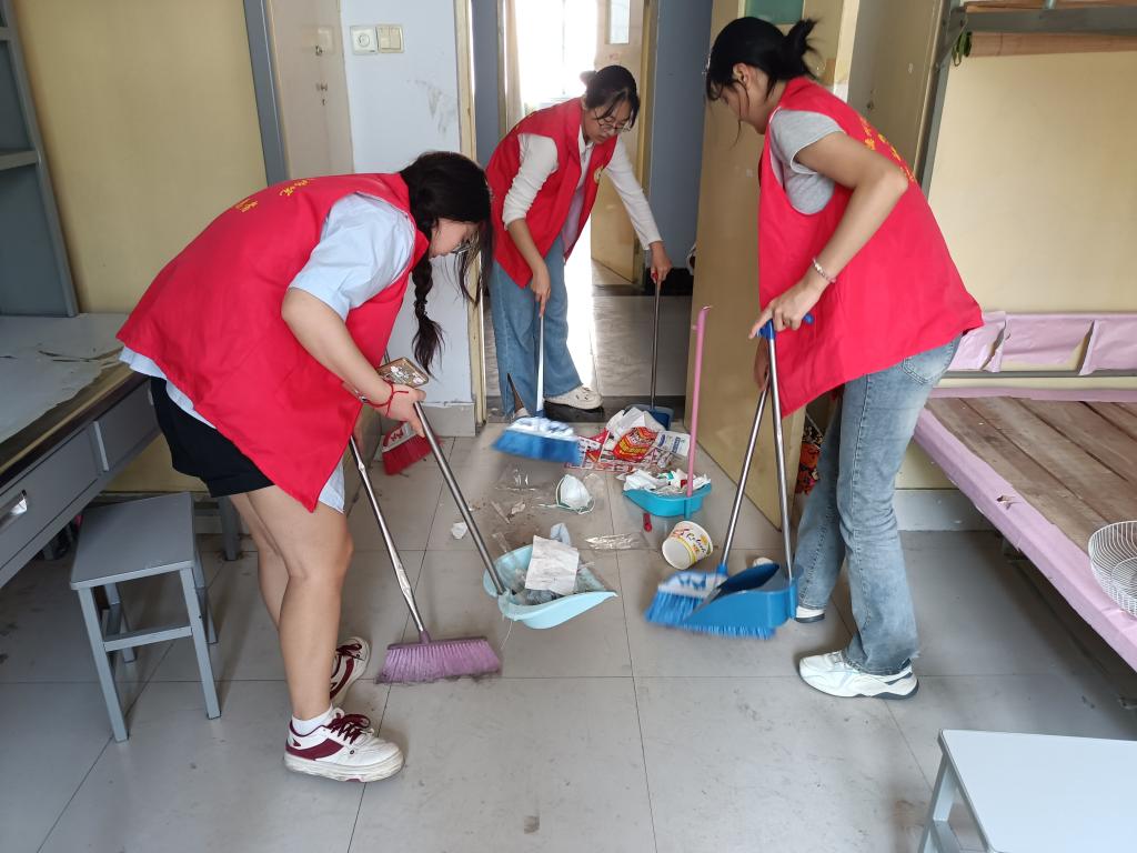 为做好新生后勤保障服务工作,给即将入学的2023级新生们营造一个干净整洁、舒适温馨的公寓环境,2023年8月27日-31日,医药与护理公司志愿者积极参加迎新准备工作,开展新生宿舍的卫生打扫、卧具发放等志愿活动。