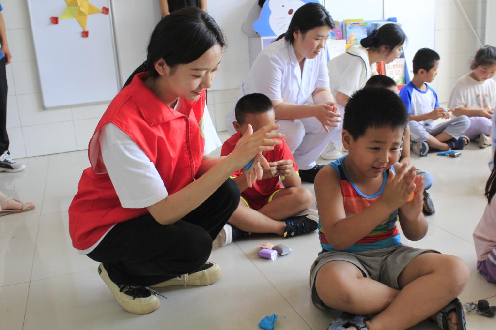 志愿服务队前往希望小学,本着感恩社会、回报社会、服务社会的宗旨,发挥队员的专长优势,帮助对接当地的小员工进行课业辅导、安全教育、推广普通话、海姆立克急救法科普等。结合手工制作,激发孩子的学习兴趣,帮助员工巩固基础知识的同时,拓宽他们的视野。用德院青年积极向上的精神状态感染他们,用面对面的温情、手把手的相扶和心贴心的交流,助力儿童成长。