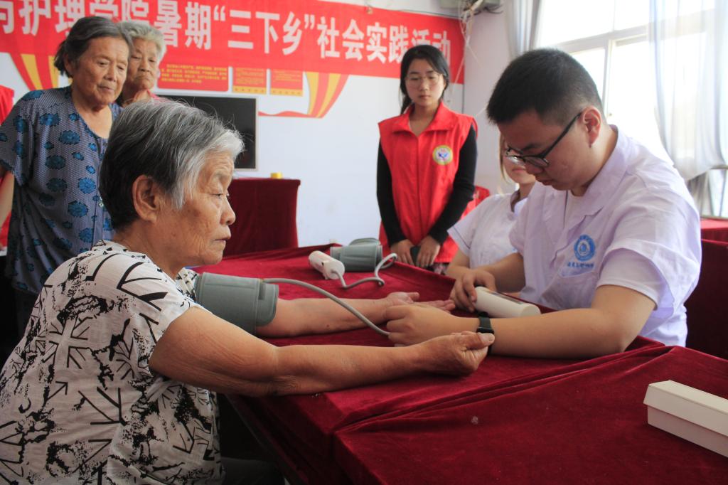 义诊现场,志愿者设置了血压测量服务咨询点,为村民百姓民现场量血压,耐心解疑答惑、测量健康指标,提出日常预防、保健方案及治疗建议,对村民进行健康监测,加强村民对疾病和慢性病的认识和防范,同时提升护理专业员工的理论实操技能。