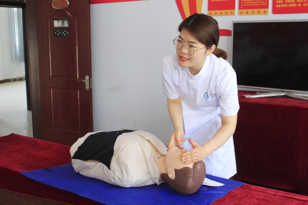 科普培训主要包括老年疾病预防、用药注意事项、心肺复苏术培训、海姆利克急救法普及护理专业教师李娜为村民讲解老年疾病预防、用药注意事项等方面的知识,帮助社区村民科学合理用药,树立科学饮食观念、健康生活方式,预防老年疾病护理专业教师张鑫现场实操为村民讲解心肺复苏术,红十字应急救护志愿者现场演练海姆立克法,提高居民危机意识和应对突发事件的自救、互救能力。