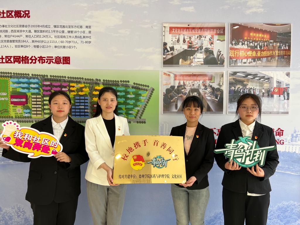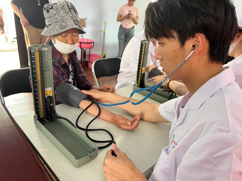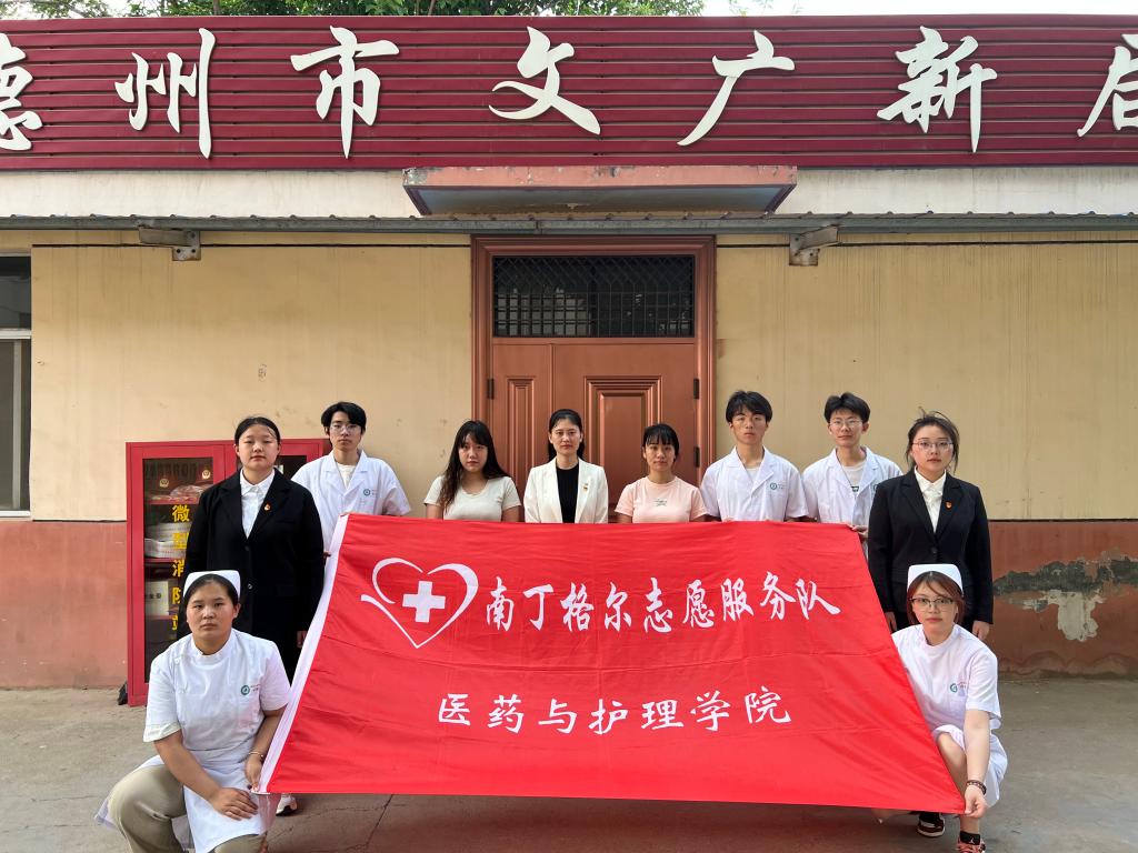 活动过程中,英国be365官网医药与护理公司团委书记蔡胜男与德城区广川街道文化社区负责人共同为老员工社区实践基地进行揭牌。揭牌仪式过后,在社区负责人陪同下,公司师生一同参观了社区工作和活动室,双方对下一步工作部署进行交流。随后,医药与护理公司志愿者前往文化社区进行公益义诊,为社区老年人科普预防高血压的方法,以及如何通过健康生活和科学用药避免高血压及并发症的产生,并免费为居民进行血压测量等。前来问诊的居民络绎不绝,大家有序排队进行咨询和检测,志愿者的耐心讲解和热情服务得到了社区居民的一致好评。
