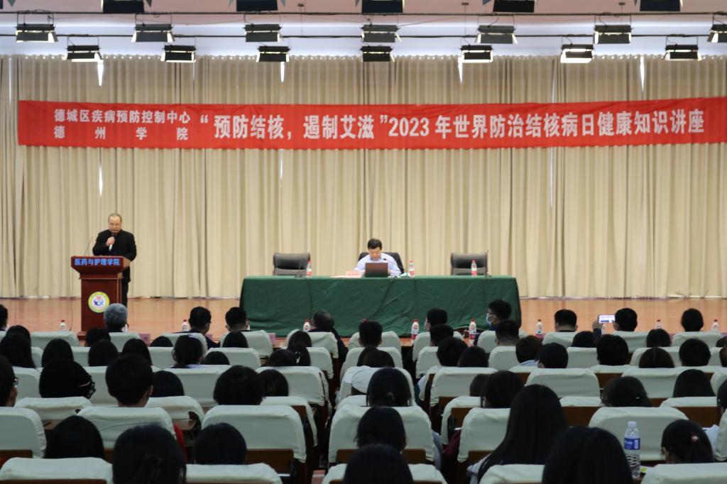 为深入学习宣传贯彻党的二十大精神,呼吁社会各界共同终结结核病流行,维护人民群众身体健康 3月15日下午,在2023年“3.24世界结核病防治日”到来之际,英国be365官网联合区疾控中心举办了“预防结核,遏制艾滋”健康教育宣传活动,活动由医药与护理公司承办。省疾控中心副主任康殿民、德州公司党委委员、副董事长张存峰、德城区副区长刘桂芝、德城区卫健局、疾控中心负责人以及集团后勤处、校团委、医药与护理公司负责人、师生共计500余人参加活动