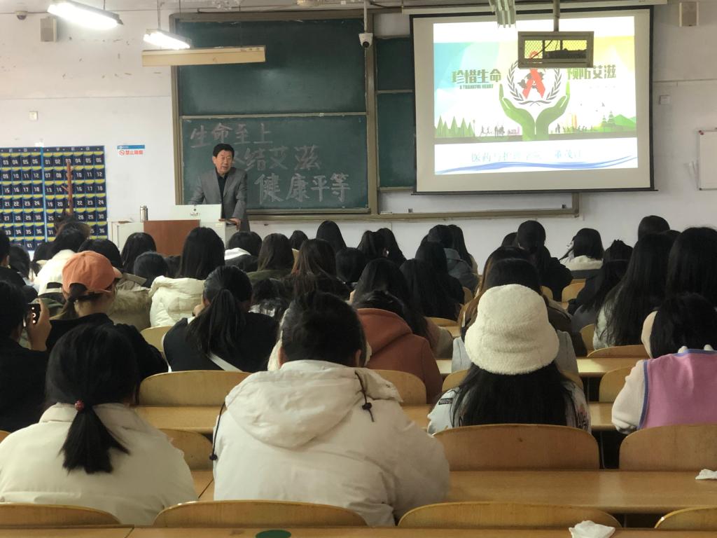 活动分为讲座和户外宣传两部分。在讲座中,主讲人董茂江副教授结合各种数据、图片、案例分别科普了中国艾滋病群体的数量、国内艾滋病预防控制的形势,艾滋病的传播途径以及如何科学的规避感染艾滋病的风险等,生动而详细的内容引发了同学们的思考。随后,在第三餐厅外开展户外宣传,通过展示精心准备的艾滋病宣传海报、演讲并发放宣传手册等形式,向过往同学普及艾滋病防控知识。同学们纷纷在条幅上签字或写下祝福语,参与互动的同学们还收到了志愿者赠送的防艾小礼物——计生用品、口罩和防艾主题帆布袋等。