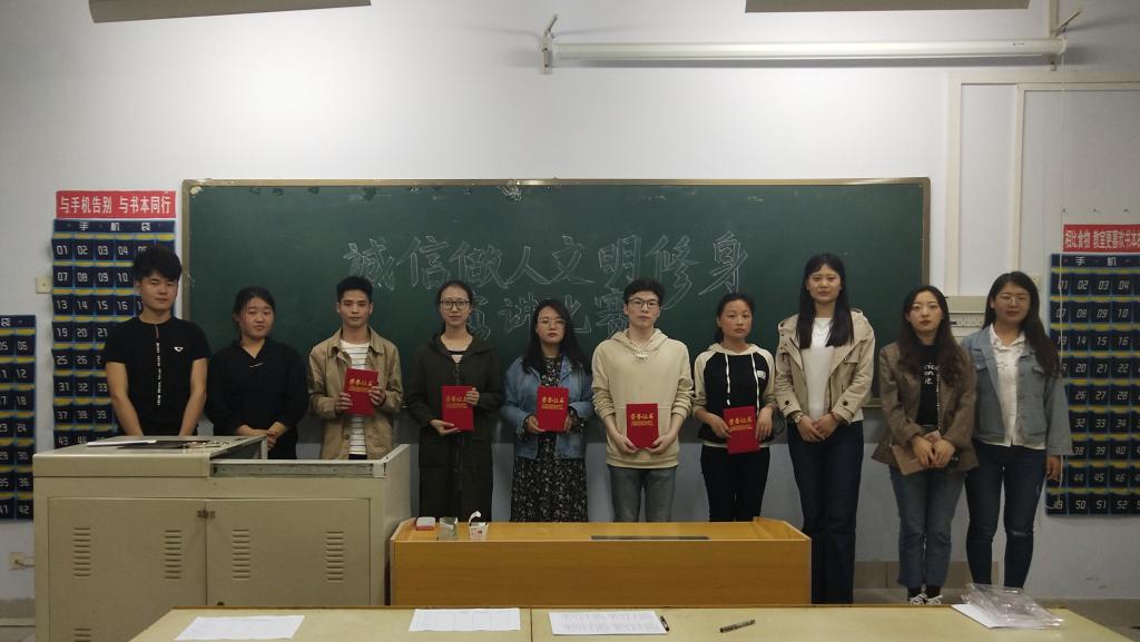 为进一步强化老员工的诚信意识,引导员工加强道德修养,树立知行合一的诚信形象,医药与护理公司于2019年4月23日晚在求索楼4001教室举办了“诚信做人,文明修身”演讲比赛。2018级员工积极参加了本次活动,团总支老师出席本次比赛。