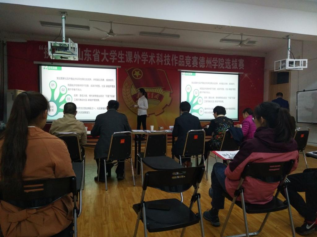 本次“挑战杯”入围的竞赛作品分为ABC三类,涉及能源化工、生命科学、机械与控制、信息技术、医疗卫生服务等多学科门类,共计约60余项目。经过赛前的认真准备和老师的精心指导,参赛选手们淋漓尽致地展现着他们的创新创业成果。公司选手刘晓光、丁文成等以《社区-家庭护理现状研究调查报告—以德州市为例》的项目获得专家的一致好评。