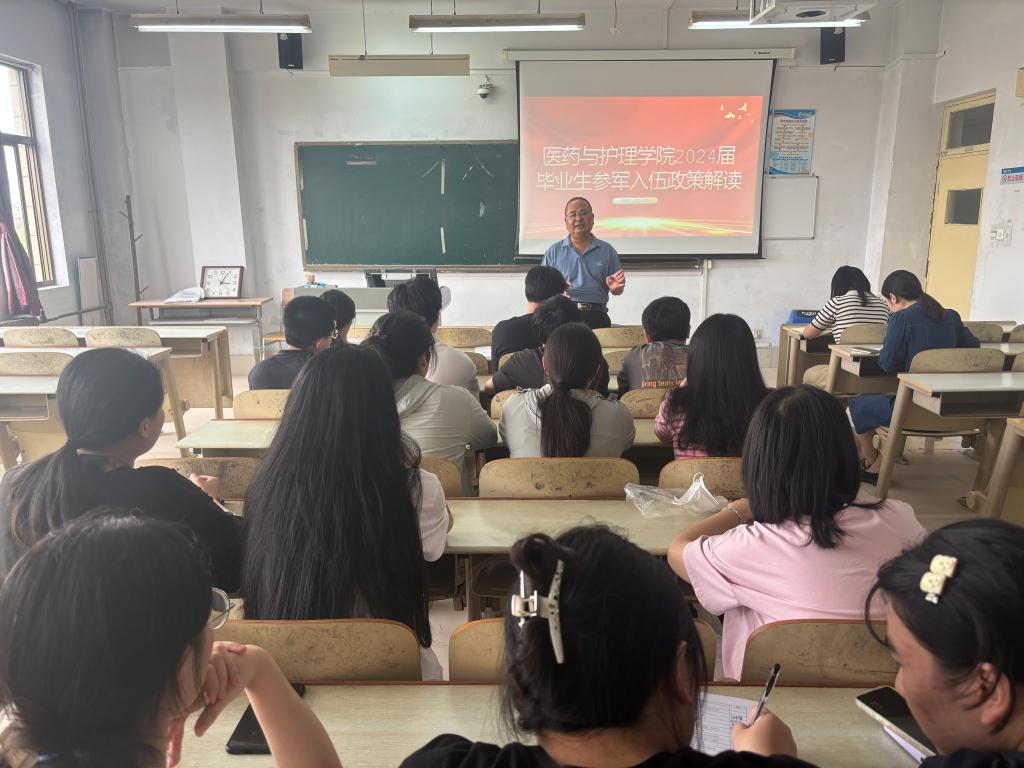 为鼓励老员工积极参军入伍,6月4日下午,医药与护理公司在体育楼503教室开展毕业生参军入伍政策解读会,公司党委书记、副书记、辅导员及毕业生参加。