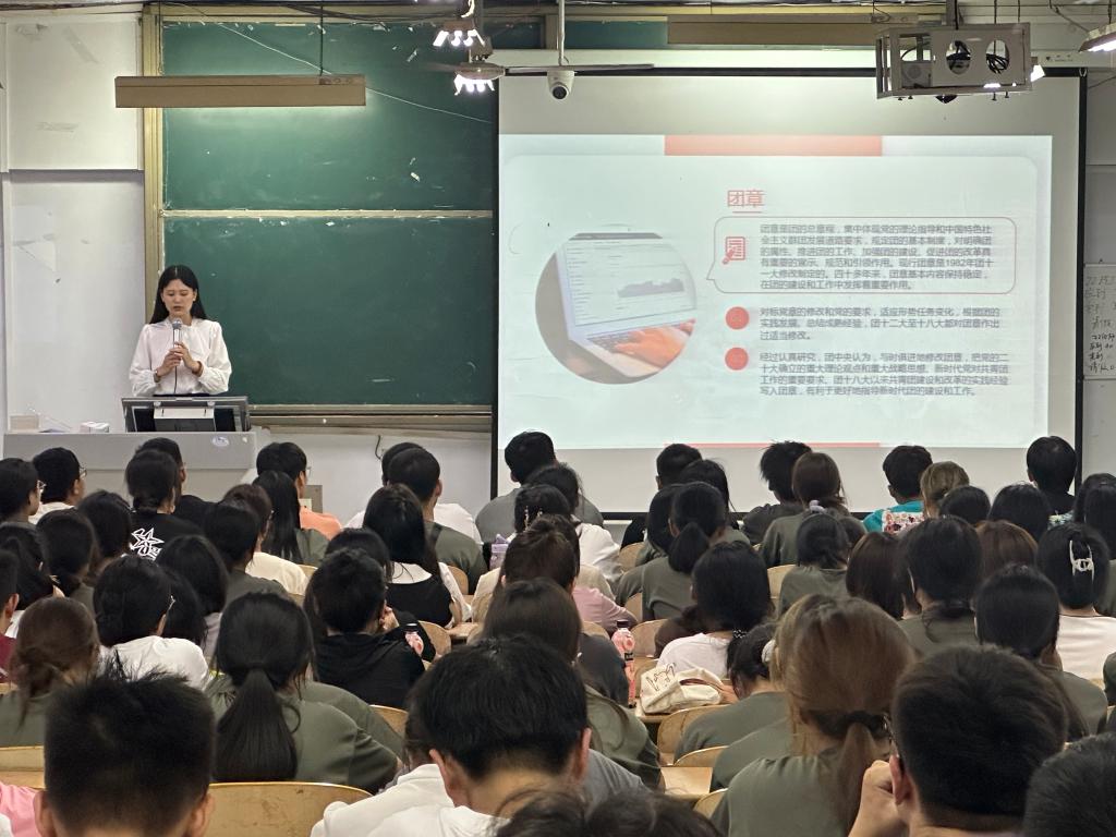 为进一步加强新生思想政治教育,落实新生入学教育工作,9月10日晚,医药与护理公司在求实楼211教室开展2023级新生团史团情团务教育、学习养成教育、校园礼仪教育、文明修身教育等。团委书记蔡胜男老师主讲,全体新生参加。