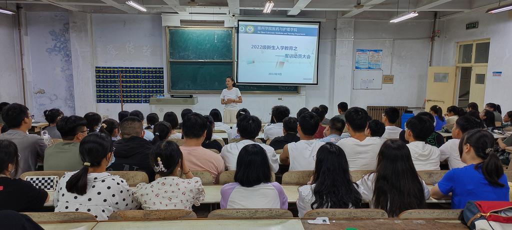 9月19日晚,医药与护理公司在体育楼召开2022级新生军训动员大会,公司团委书记主持,军训指导员、教官和2022级全体新生参加。