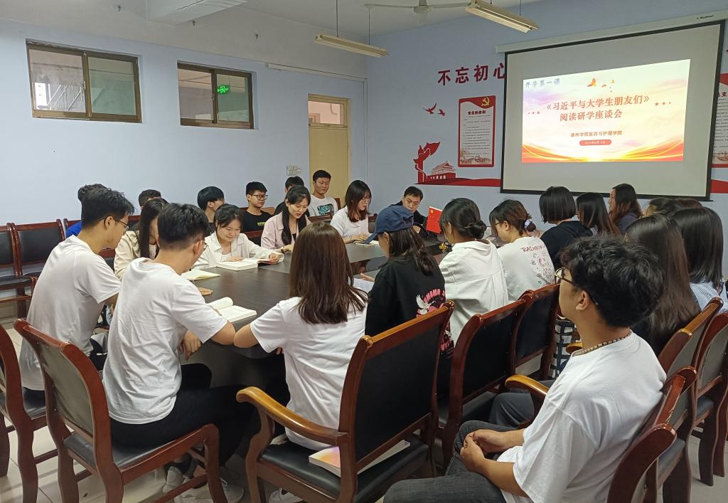 9月15日下午,医药与护理公司在体育楼508会议室开展《习近平与老员工朋友们》阅读研学主题团日活动,公司团委书记蔡胜男主持,辅导员、员工会成员和各年级员工代表参加。