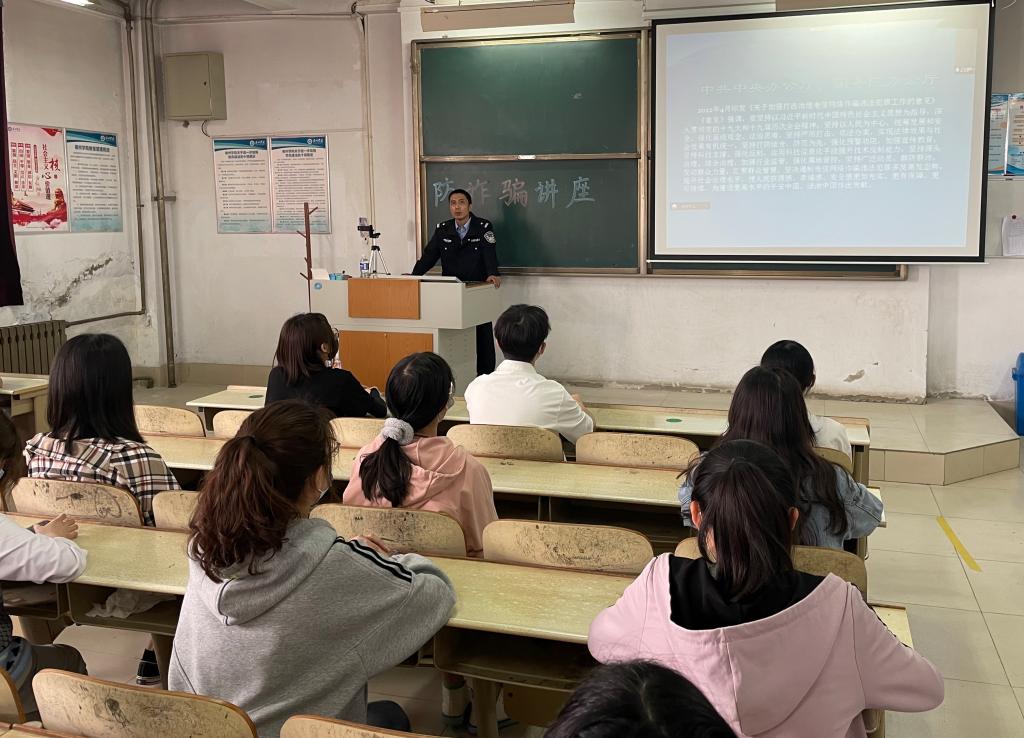 为落实省教育工作会议精神,守好校园安全底线,确保校园安全稳定,提高员工诈骗防范意识和风险辨别能力。4月24日上午,医药与护理公司邀请湖滨北路派出所田欣为2021级全体员工进行防诈骗主题讲座,讲座分主会场和两个分会场。