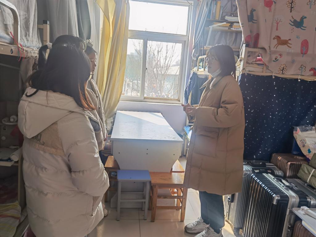 本次大检查通过宿舍自查、员工会检查、领导班子和辅导员验收的形式,以宿舍卫生内务和安全内容为重点,展开全方面、全覆盖、全员参与的拉网式排查。在本次检查中,各领导老师深入到宿舍,主要针对疫情防控、私拉乱接、使用违规电器、吸烟等内容详细排查,尽可能地把安全隐患消除在萌芽之中,以最大限度保证员工的人身安全。冯立顺书记一行与员工亲切交谈,询问员工生活学习情况,深入掌握员工思想动态。通过走访和排查发现,大部分员工宿舍总体情况良好,对于发现的安全隐患,现场进行安全教育并责令限期整改。