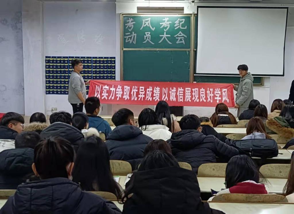 为严肃考风考纪,做到诚信考试,营造良好氛围,医药与护理公司12月15日在体育楼401教室召开诚信考试动员大会,2019-2021级部分员工代表参加。