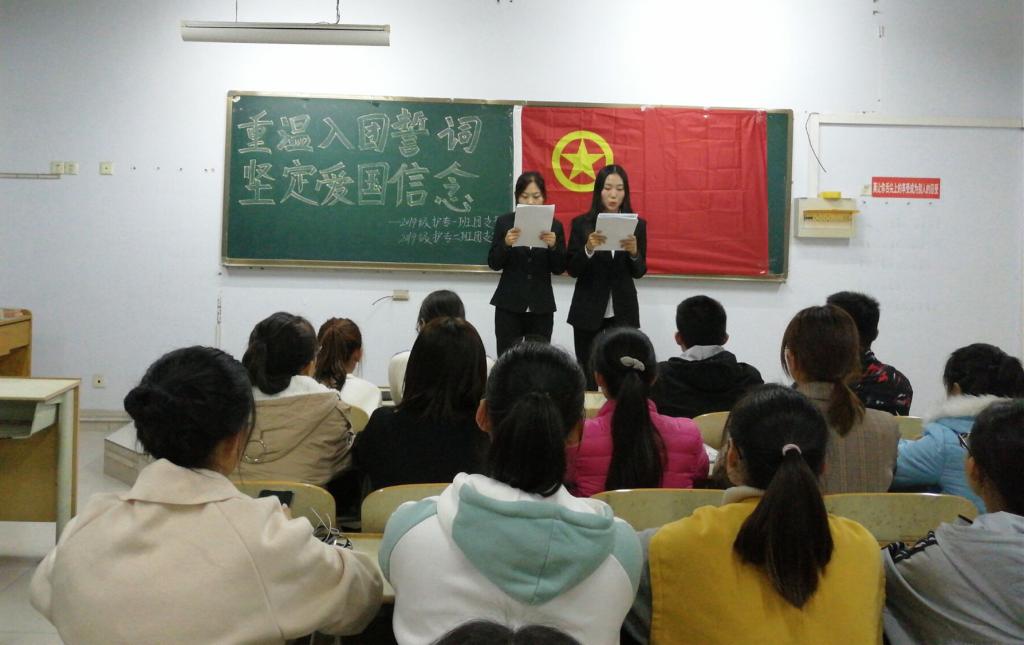 为深入学习习近平总书记系列重要讲话精神,团结带领团员青年争当建功新时代的先锋。医药与护理公司2018、2019级各团支部于2019年11月7日晚七点在求索楼各教室开展以“重温入团誓词,坚定爱国信念”为主题的活动。