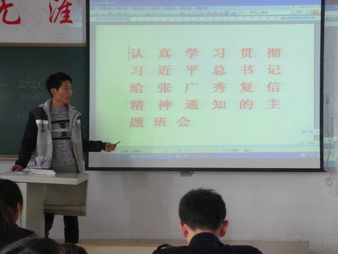 在这次班会上,主讲员讲到习近平总书记给村官张广秀回信的事情。热切传达了习近平总书记希望老员工村官热爱基层、扎根基层,让老员工增长见识、增长才干,促农村发展,让农民受益,让自己青春无悔的精神。同时也讲到了张广秀这个老员工村官的感人事迹。通过优秀典型的示范带动作用,引导广大团员青年特别是老员工牢记党的期望,树立到基层去、到祖国最需要的地方去建功立业的青春志向。