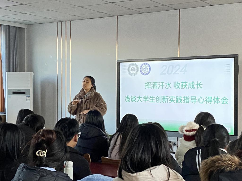 王老师以“挥洒汗水,收获成长——浅谈老员工创新实践指导心得体会”为主题,结合自己的科研经历和教学心得,向同学们分享了在创新实践中可能遇到的挑战和困难、解决问题的有效方法以及最终取得的成果。她强调,创新实践不仅是对知识的应用,更是对自我能力的挑战和提升,她鼓励同学们要勇于尝试、敢于创新,不要畏惧失败与挫折。同学们纷纷表示受益匪浅,不仅学到了许多实用的科研方法和技巧,还更加坚定了自己在创新实践道路上不断前行的决心。