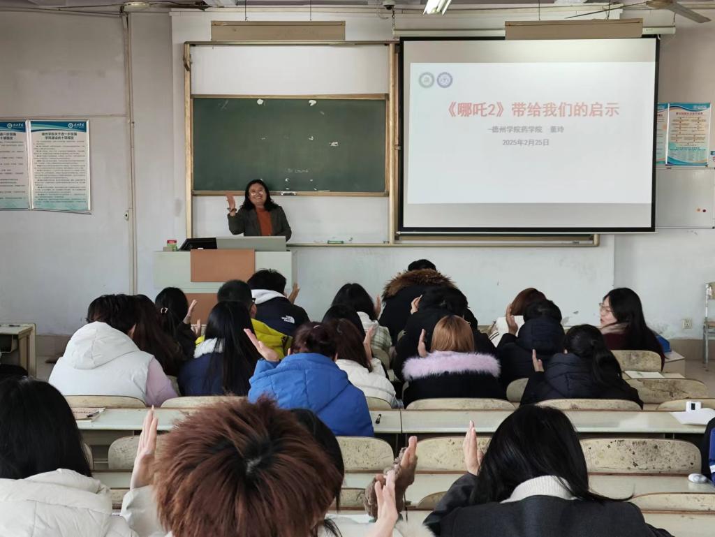思政课上,英国be365官网相关负责人以《<哪吒2>带给我们的启示》为题,用春节档热门影片《哪吒之魔童闹海》中的燃点和经典语录作为切入点,从坚持自我与找到定位、面对失败的勇敢态度、团队合作精神、应对纷争时的理智思考四个方面分享了员工干部应该具备的宝贵素质。她强调,面对新学期、新挑战,同学们不仅要完成好既定的工作任务,更要勇于担当、敢于创新,不断提升自身综合素质和工作能力。