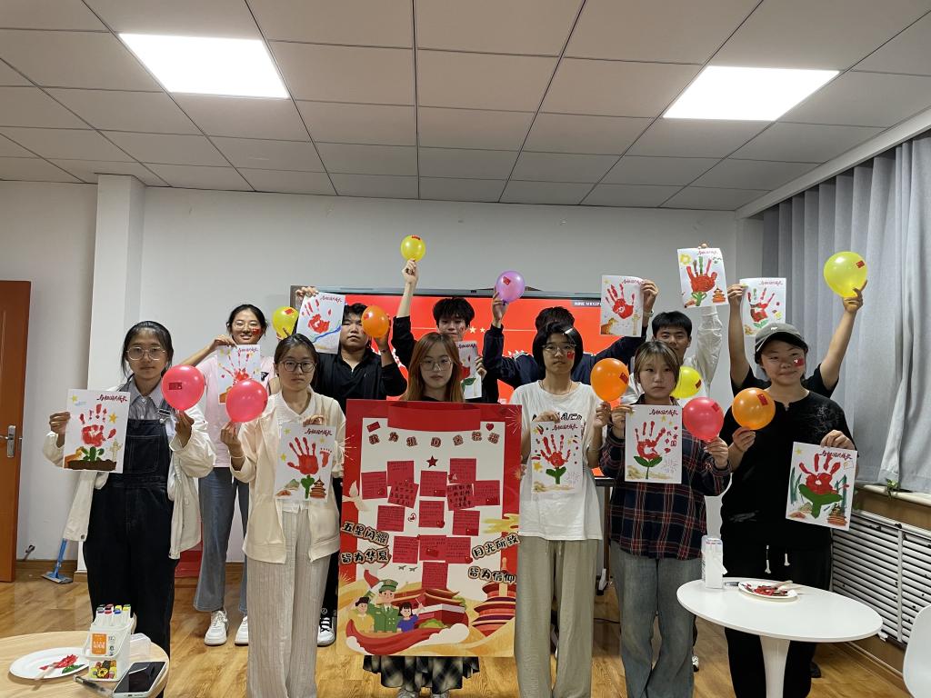 本次活动涵盖主题宣讲、祝福征集与创意手工三大环节,各环节紧密衔接、亮点纷呈。“回望征程,致敬祖国”主题宣讲现场,一个个振奋人心的历史瞬间被深情讲述,从“两弹一星”的横空出世到脱贫攻坚的伟大胜利,再到航天事业的跨越发展,深深打动了在场师生,掌声与赞叹不绝于耳。“心语寄华夏”祝福墙前温情流淌,师生们执笔写下对祖国的挚爱祝福,五彩便签层层汇聚,凝结成一片动人的“情感海洋”。而“掌印绘家国”创意手工区则将气氛推向高潮,大家以手为笔,以心为色,在共同绘就的家国画卷上留下炽热的爱国印记,现场充满了青春的欢笑与深情。