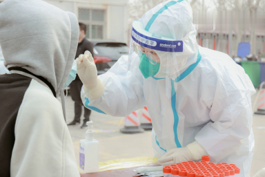 这张照片一直收藏在自己的手机中,照片中的医护人员就是我的老师和学长学姐,每天奋战在一线,很早来到核酸采样点,穿戴好防护装备投身各自岗位,是那些日子中他们的常态。他们舍己为人,不辞艰辛,勇于奉献的精神令我敬佩。作为一名护理学专业的员工,我也会向他们看齐,时刻做好准备,全心全意为大家服务。