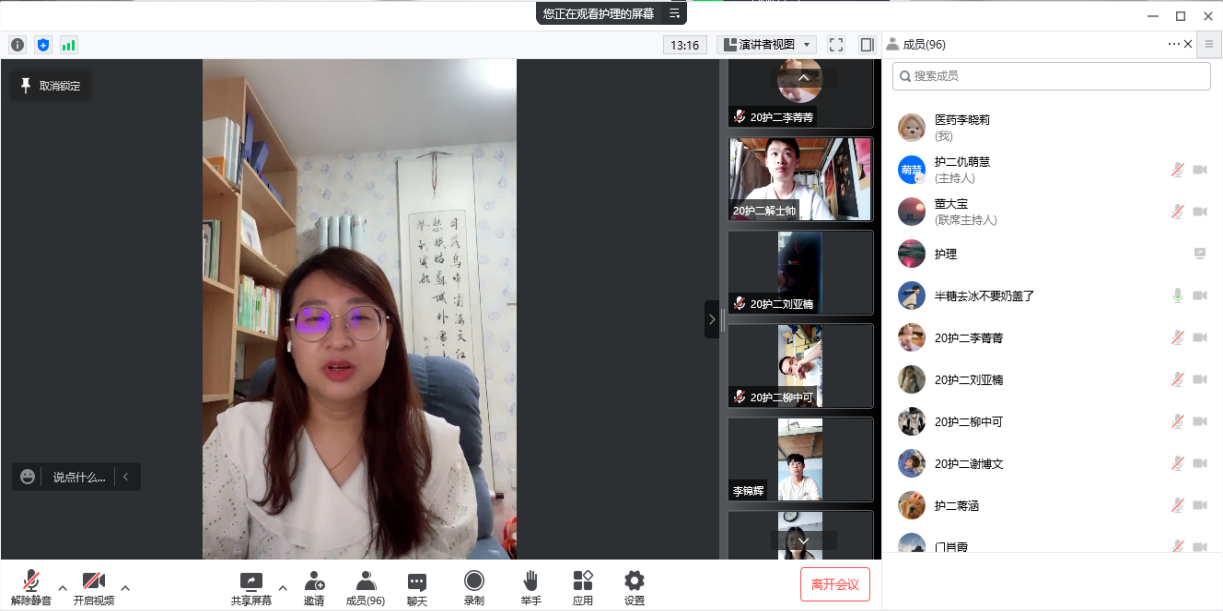 5月11日,由医药与护理公司承办的庆祝建校51周年校庆日“寻访秩年员工”活动以云端的方式举行。本次活动邀请到医药与护理公司2008届优秀员工、天津医院创伤骨科足踝外科、中华护理学会骨科专科护士、天津市护理学会骨科专委会委员廉军孝为主讲嘉宾,2022届毕业生、2019、2020级员工代表参加分享会。