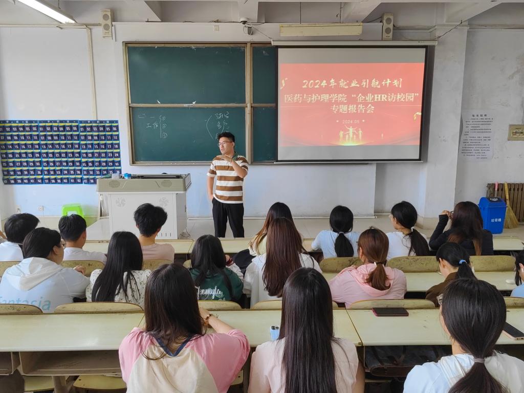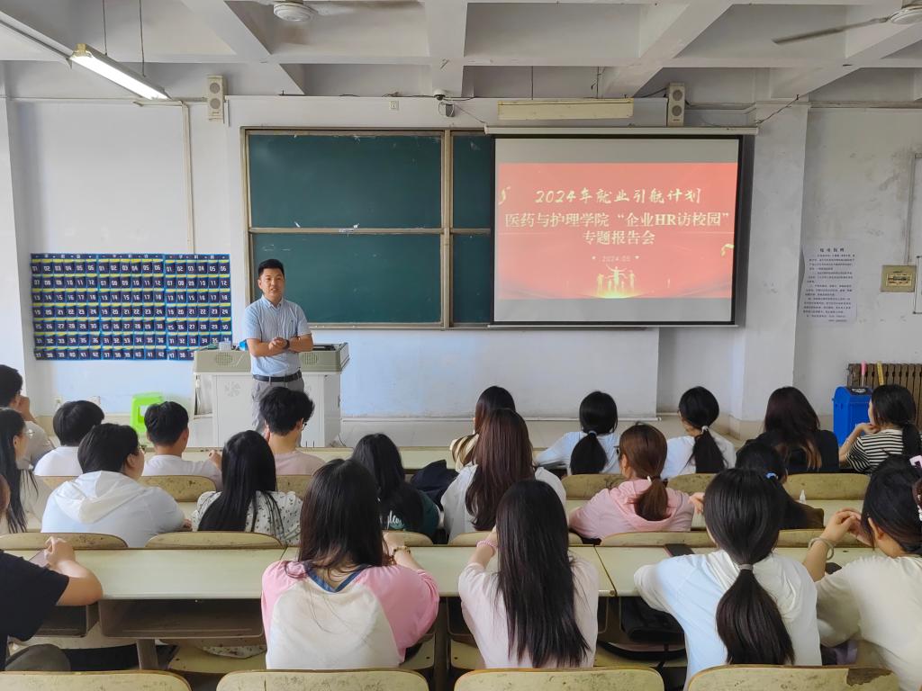 为切实做好2024届毕业生就业工作,搭建毕业生与用人单位交流平台,引导同学们科学规划未来的职业发展道路,医药与护理公司于2024年5月23日在体育楼301举办“企业HR访校园”专题报告会。报告优秀员工邀请赛诺菲中国投资有限公司地区经理王磊和江苏恒瑞医药股份有限公司临床监察员韩启奎为在校生开展职业规划指导。