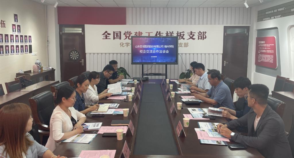 9月6日上午,山东百诺医药股份有限公司高级副总裁卢朋尧一行来公司座谈交流。医药与护理公司党委副书记、副经理、辅导员,就业指导处科长参加了本次座谈会。