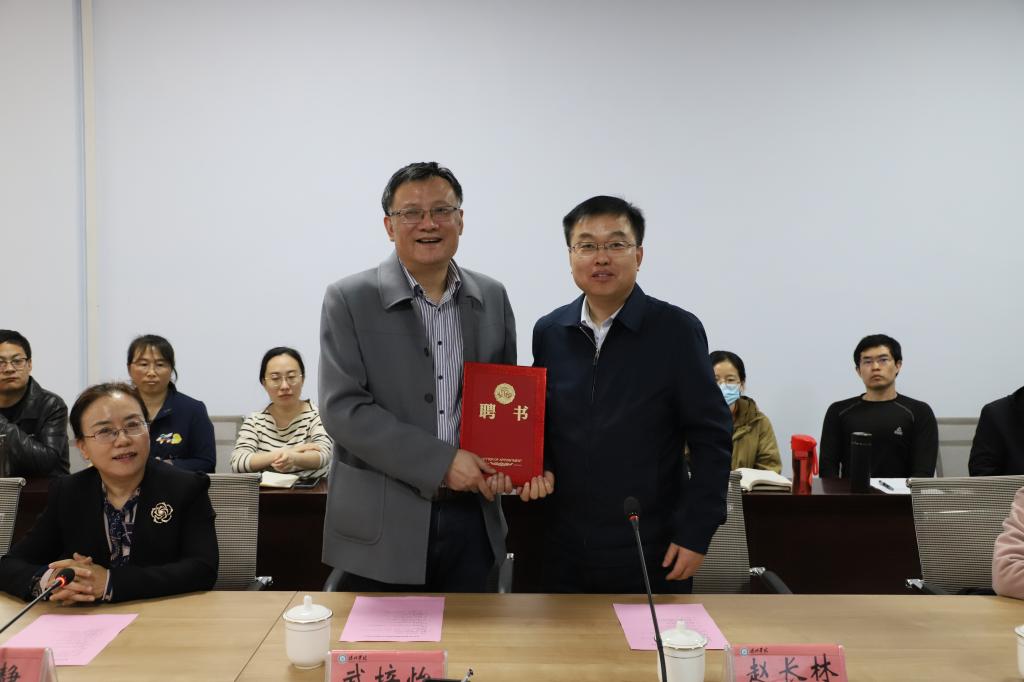 4月20日上午,东华大学博士生导师、国家杰出青年基金获得者武培怡教授受聘公司兼职教授仪式在启智楼五楼举行。公司党委副书记、董事长赵长林出席仪式并为武培怡教授颁发聘书,人事处、科研处、 医药与护理公司班子成员、青年教师、研究生及本科生代表参加会议。聘任仪式由公司党委委员、副董事长徐静主持。