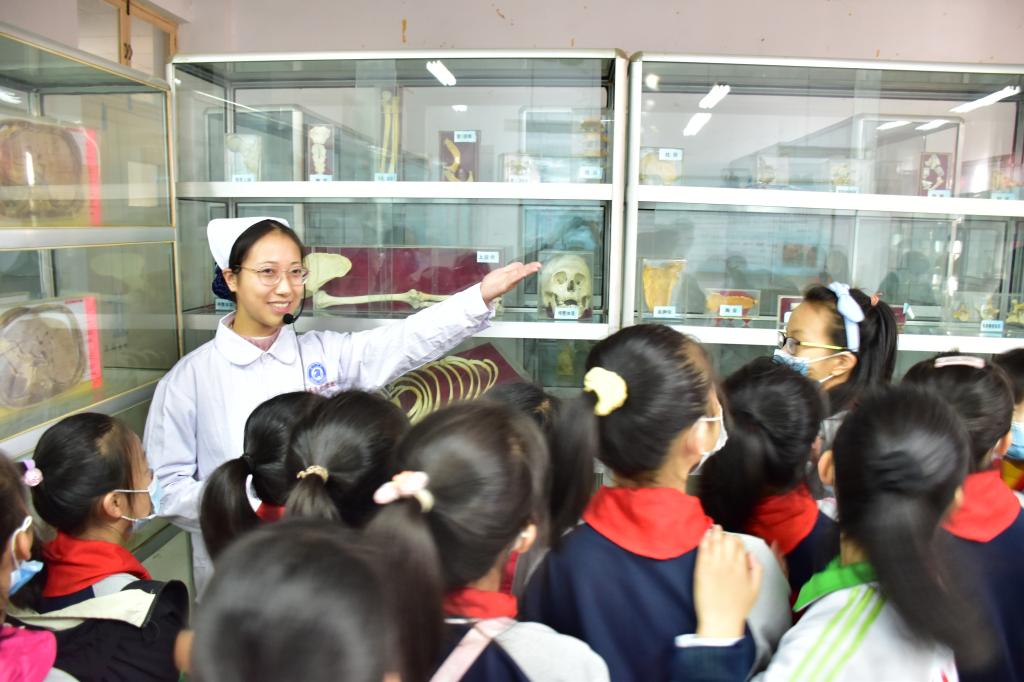11月6日,山东省医学与生命健康教育基地组织湖滨北路小学四年级500名小员工开放参观,湖滨北路小学副董事长韦清云、年级主任袁玥,医药与护理公司负责人、部分专业教师及南丁格尔志愿服务队参加活动。