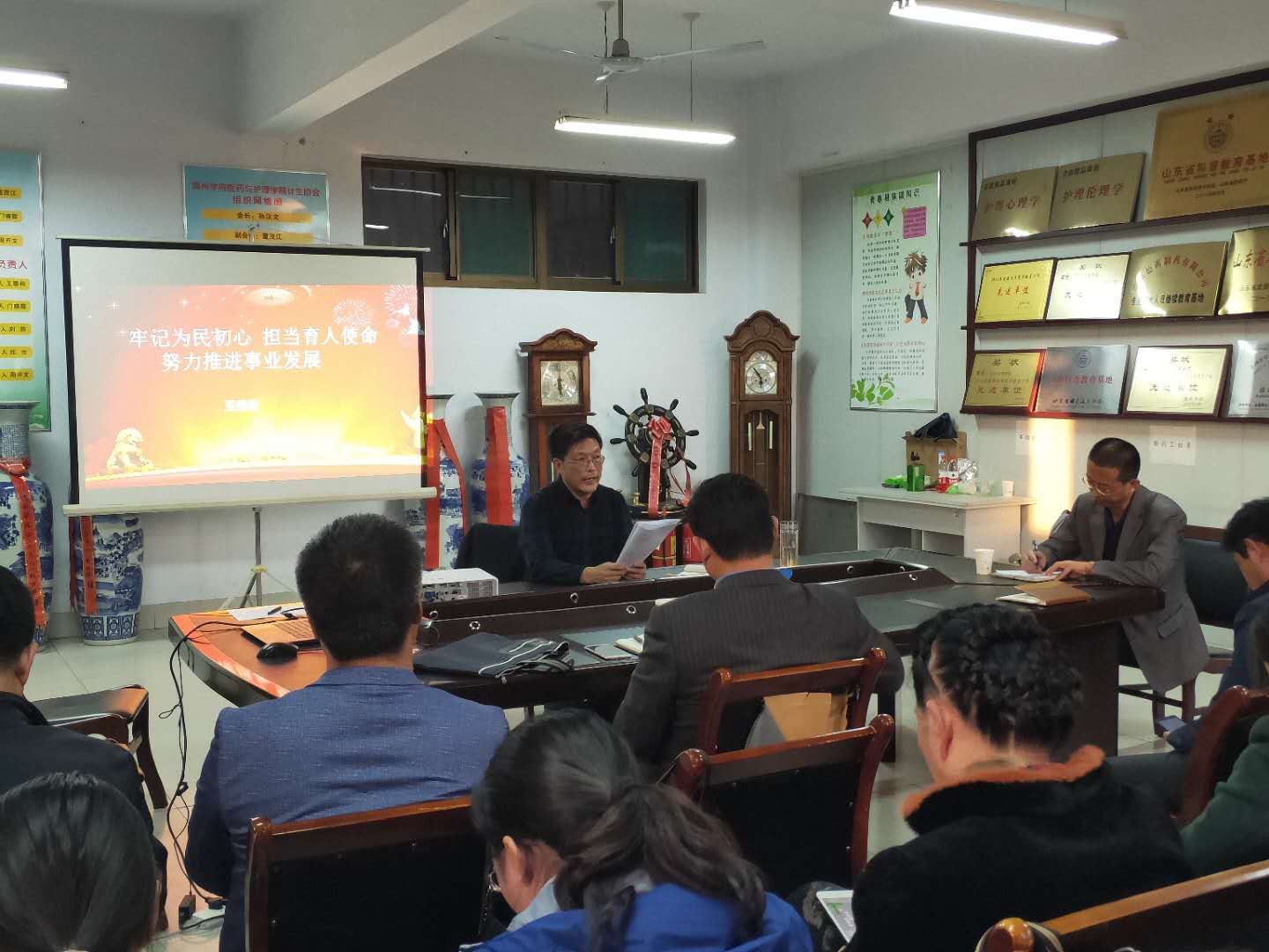 2019年11月5日,在求索楼4007会议室,医药与护理公司党总支书记王秀来以《牢记初心使命 坚持立德树人 扎扎实实推进育人工作》为题,为医药与护理公司全体教工、员工党员上了一堂生动的党课。