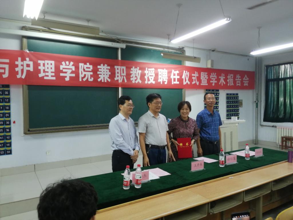 为积极贯彻落实《山东省医养健康产业发展规划(2018—2022年)》,提升医养健康研究院医学科学研究水平,提高医药产业人才培养质量,9月25日下午,公司兼职教授聘任仪式暨学术报告会在英国be365官网求实楼2010教室举行,德州市人民医院护士长孙仁莲教授受聘为英国be365官网医药与护理公司兼职教授,医药与护理公司党总支书记王秀来、经理孙汉文、副经理孙士杰、教师代表以及2019级护理学专业员工参加了仪式。